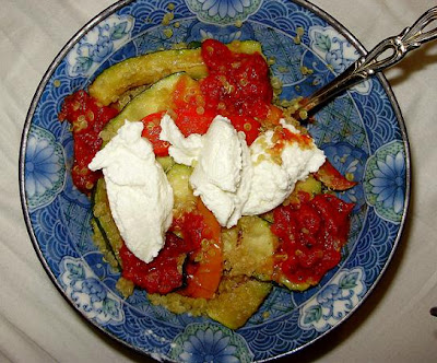 Some days the sun just seems to shine brighter-you know, the days where everything seems to go your way, you fit into your skinny jeans and your heart seems to swell with happiness. Last Saturday was one of those days for me. I was in the midst of a 3 exam, 2 paper and 1 presentation week at nursing school, but I got up early, cleaned my room, went for a massage and saw Shutter Island with Carlos (highly recommend this film!!) and cooked dinner. I decided to make quinoa with charred zucchini, bell peppers, queso fresco and a smoky-spicy tomato sauce. I couldn't have been more pleased with the results-healthy, refreshing and simple to prepare.